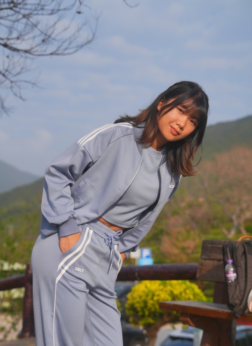 A sleek 3-piece athleisure set crafted from super-soft, all-day comfort fabric. This active travel-ready jacket, crop top, and jogger combo delivers a refined, minimal look perfect for travel, hiking, lounging, and light workouts. Effortlessly stylish, exceptionally comfortable, and designed to move with you.